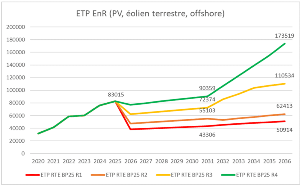 - ETP RTE BP25 R4 (vert) : scénario optimiste, forte croissance des EnR