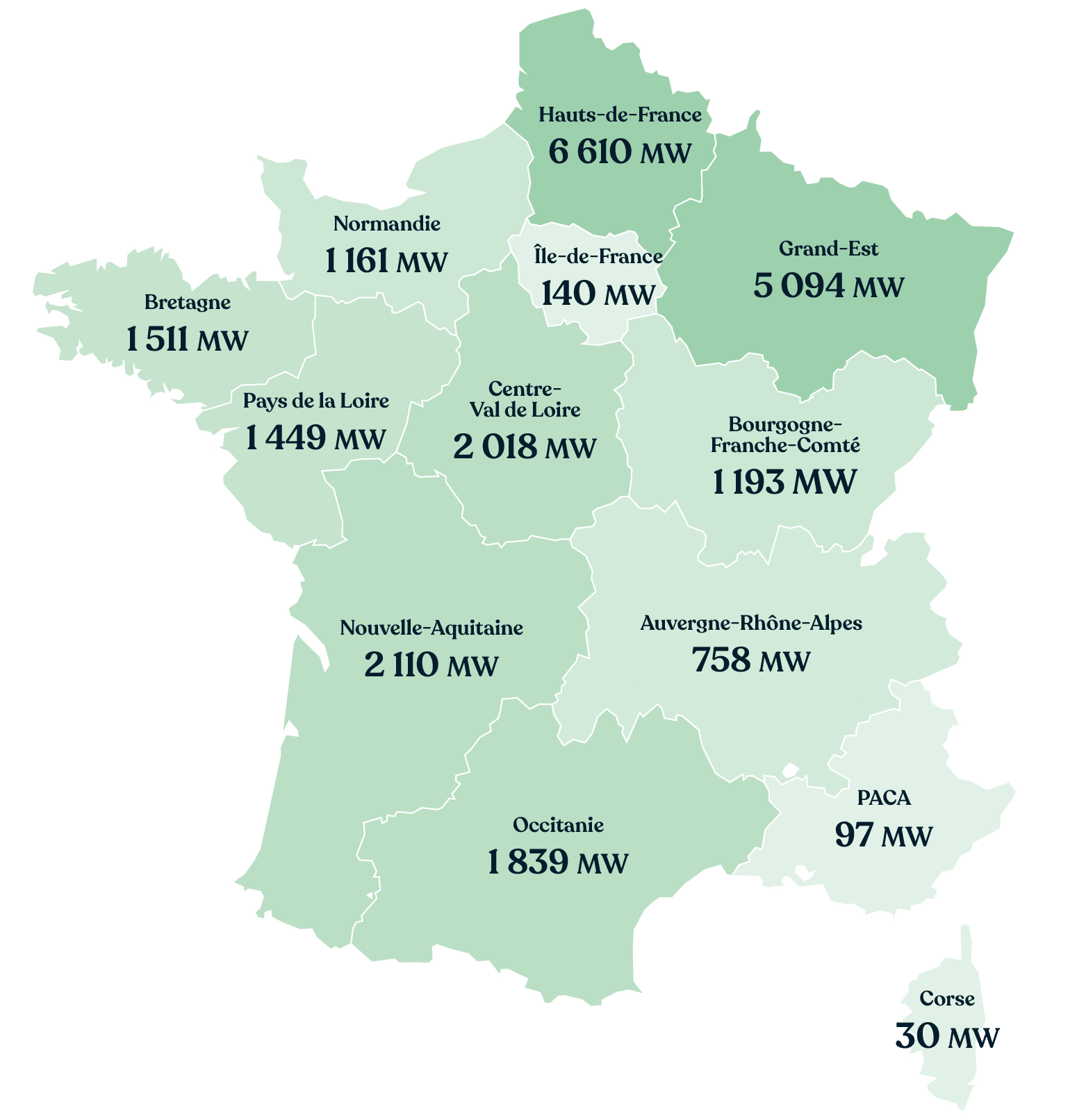 Installations raccordées par région au 31 décembre 2025
